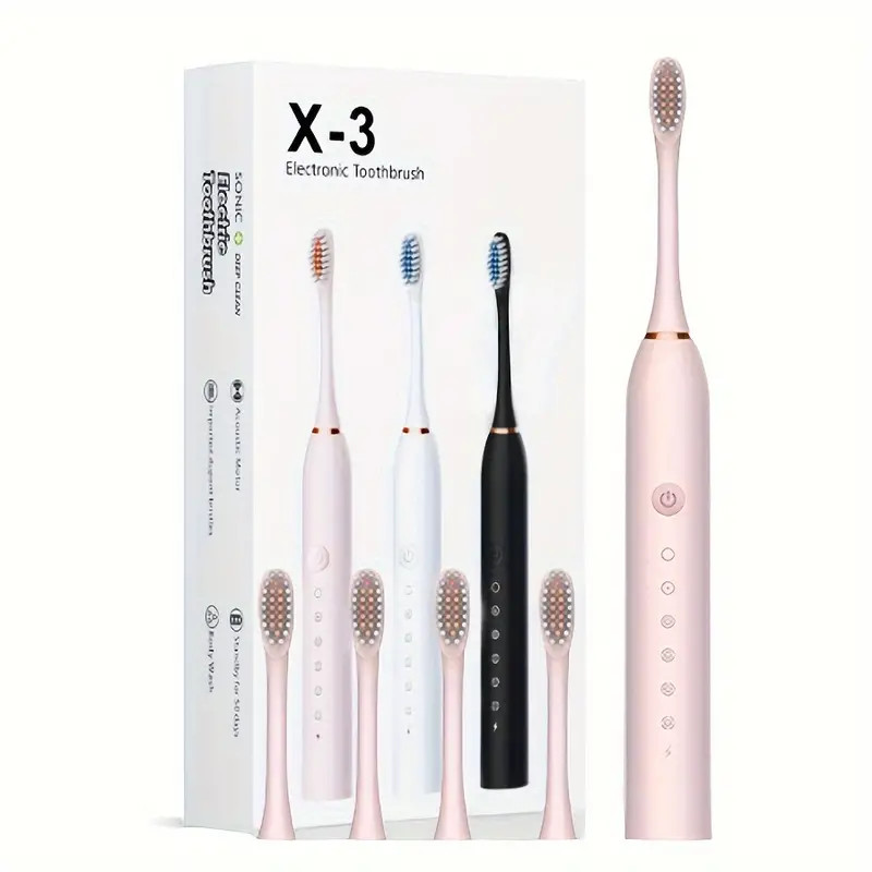 Elektromos fogkefe készlet felnőtteknek, fogkefe puha sörtéjű kefefejekkel,